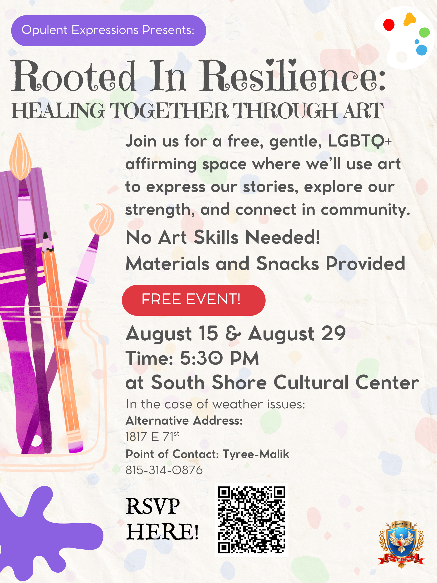 Rooted in Resilience is a free, LGBTQ+-affirming art therapy session designed to nurture healing, creative expression, and community connection. Participants are invited to gather in a supportive, inclusive space where art becomes a pathway to resilience and shared empowerment.